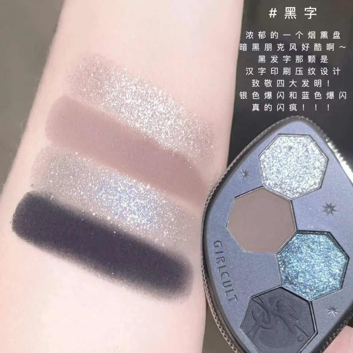 Girlcult 4 Color Eyeshadow Palette Shimmer Matte Chameleon Glitter Gothic Halloween Black Red Dark Moon Eye Shadow